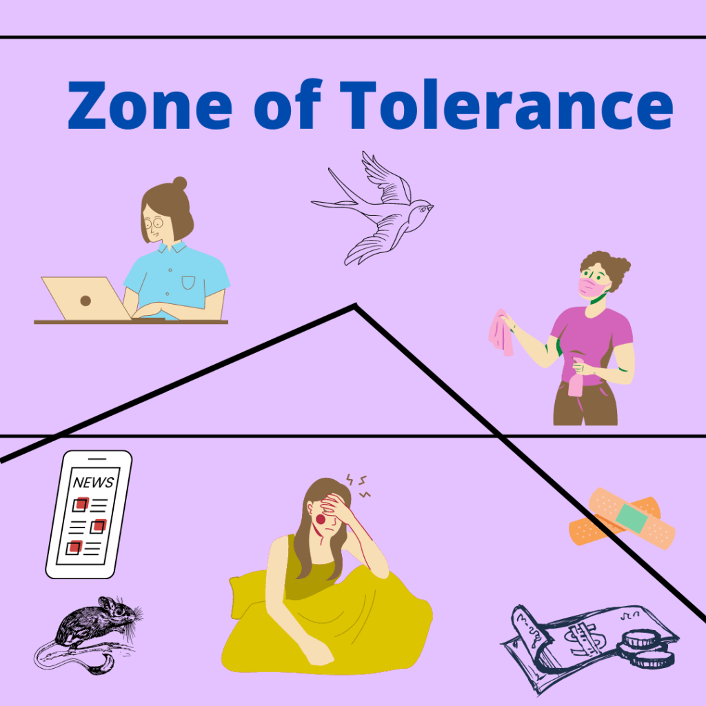 The zone of tolerance is where my brain can handle the ups and downs of daily life. Going below the threshold, into the bottom part of the image, causes me to shut down or panic.